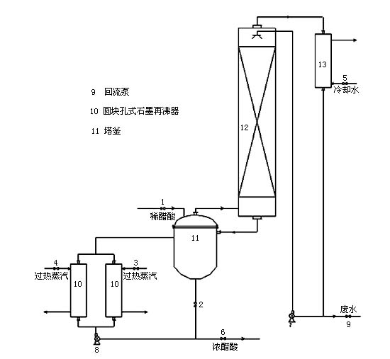 •      本系統(tǒng)采用先進(jìn)設(shè)計(jì)理念,將生產(chǎn)過(guò)程產(chǎn)生的15%-25%的稀醋酸濃縮到99%,在此過(guò)程中使排放的廢水達(dá)到環(huán)保標(biāo)準(zhǔn)。系統(tǒng)主體設(shè)備-石墨精餾塔,采用聚四氟乙烯浸漬石墨新型材料制造,整個(gè)系統(tǒng)具有工藝先進(jìn),操作簡(jiǎn)便,運(yùn)行費(fèi)用少,使用年限長(zhǎng)的特點(diǎn),目前,該系統(tǒng)已在浙江龍盛集團(tuán)、浙江閏土集團(tuán)成功運(yùn)行。